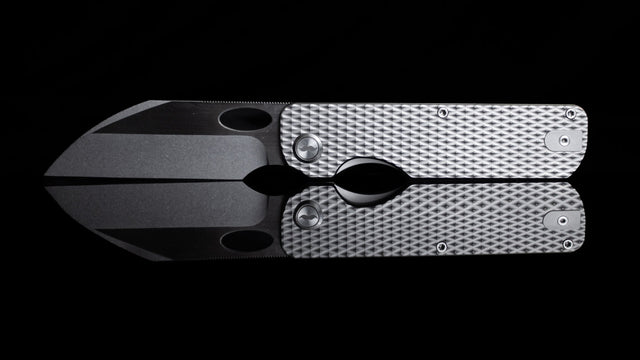 The V2 follow up for the Tristache in Stonewashed features a diamond milled titanium handle, full length stonewahed titanium backspacer and hardware, reversible clip and a 154CM hollow ground wharncliffe blade at 61-62 HRC.